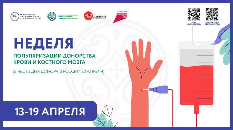 Неделю с 13 по 19 апреля 2026 года Министерство здравоохранения Российской Федерации объявило Неделей популяризации донорства крови и костного мозга. Проводится ежегодно в преддверии Дня донора, который отмечается в России 20 апреля. Эта неделя направлена на привлечение внимания общественности к важности добровольного донорства, повышение осведомленности населения о значимости донорской помощи и формирование позитивного отношения к этому благородному делу.