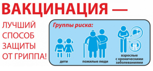 - Взрослые: ревакцинация против гриппа, клещевого энцефалита, туберкулёза, столбняка.